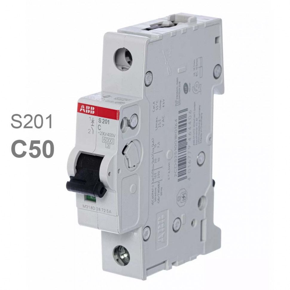 Автомат ABB S201 C50 50A (C) 6kA
