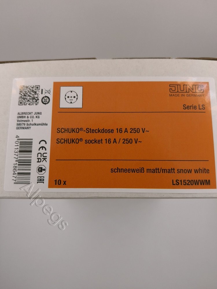 LS1520WWM Jung Розетка SCHUKO, дюропласт, белый матовый