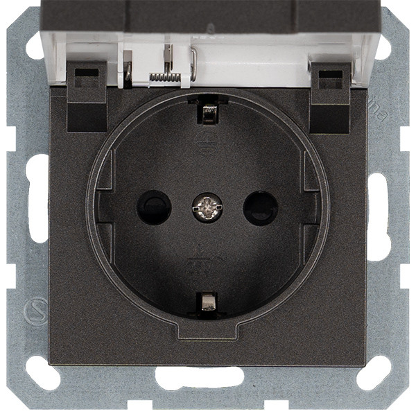 Розетка SHUKO© с крышкой и защитными шторками 16A 250V~ 2P+T, цвет Мокко, G5505Z, JASMART