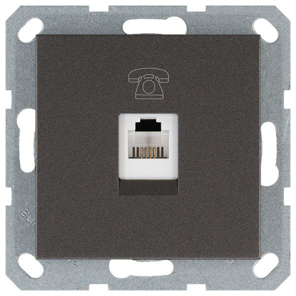 Телефонная розетка RJ11 с накладкой, цвет Антрацит, G6101B, JASMART