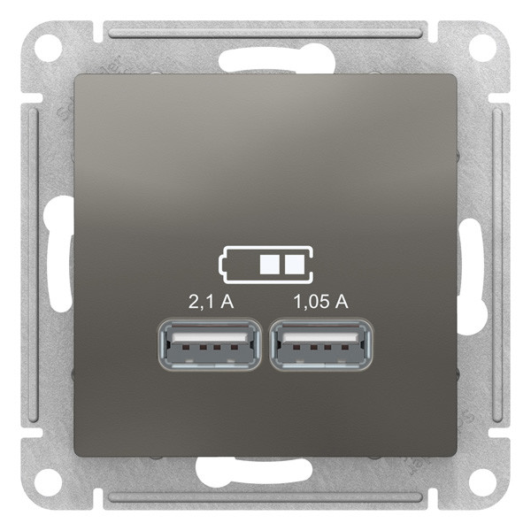 ATN000933 - AtlasDesign USB РОЗЕТКА, 5В, 1 порт x 2,1 А, 2 порта х 1,05 А, механизм, СТАЛЬ