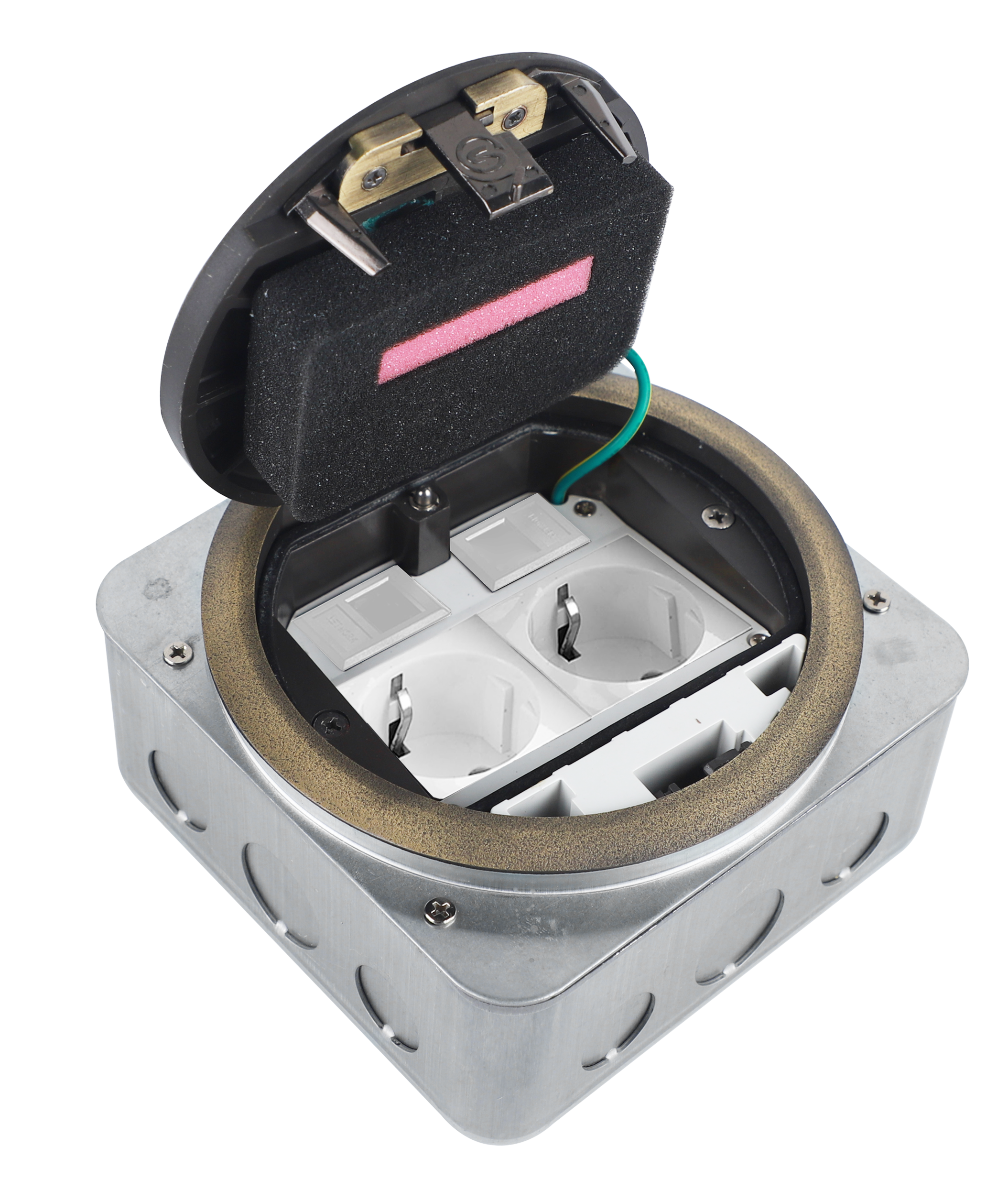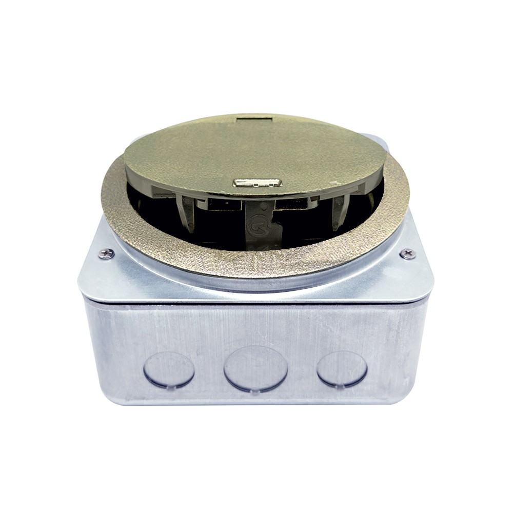 Donel Лючок в пол 4 мод. (2 мод. 45х45 мм.), античная латунь, круглый, металл, IP65, (с уст. набором) Внимание! Электроустановочные изделия, информационные и мультимедийные розетки в комплект поставки не входятХарактеристики:
