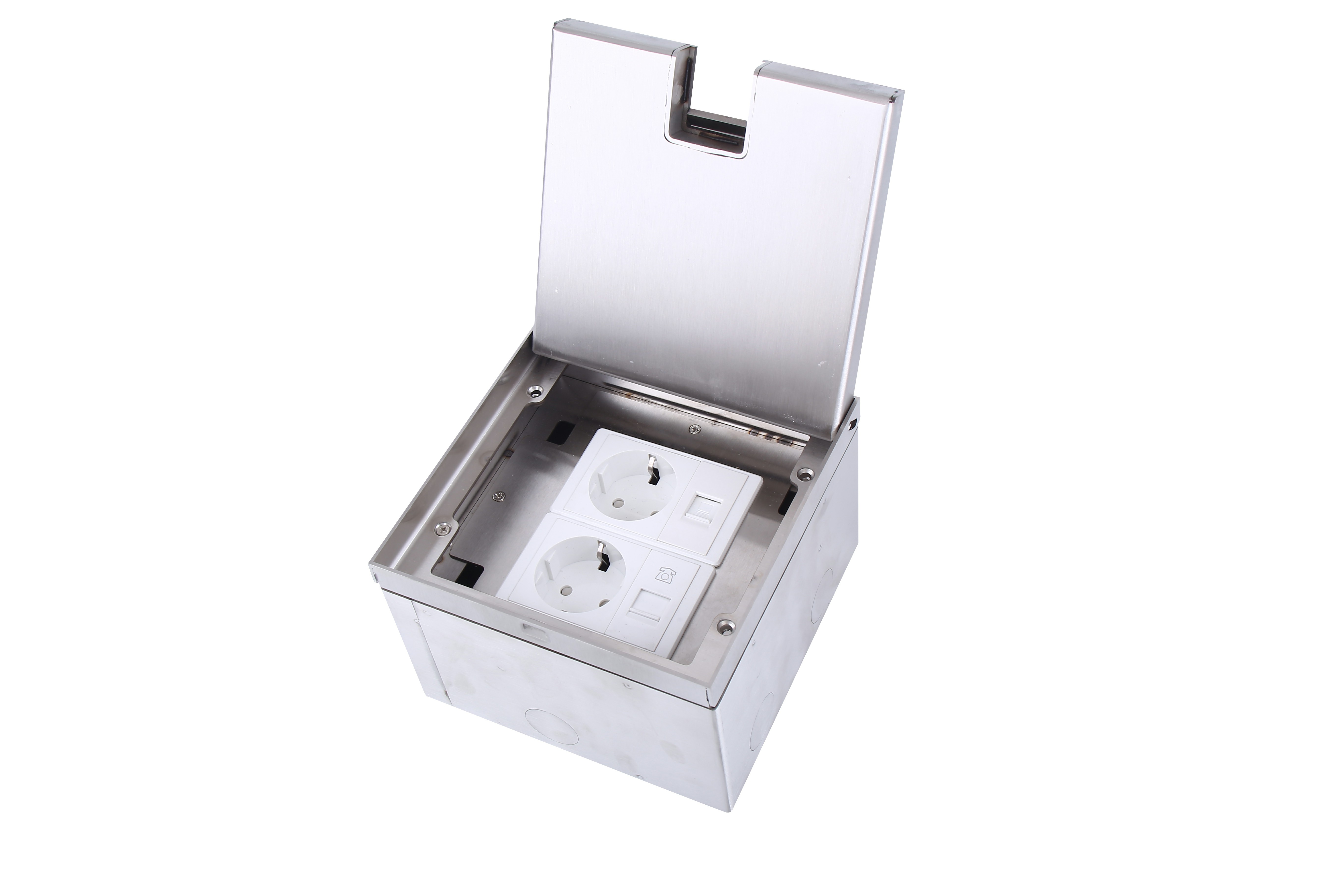 Donel Лючок в пол 6 мод. (2 мод. 45х45 мм. + 2 мод. 22.5х45 мм.), металл, в уровень с напольным покрытием Внимание! Электроустановочные изделия, информационные и мультимедийные розетки в комплект поставки не входятХарактеристики: