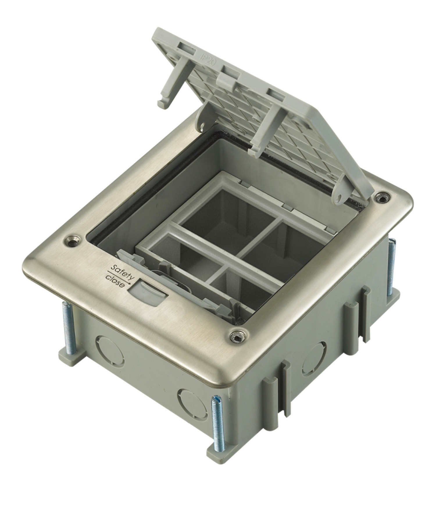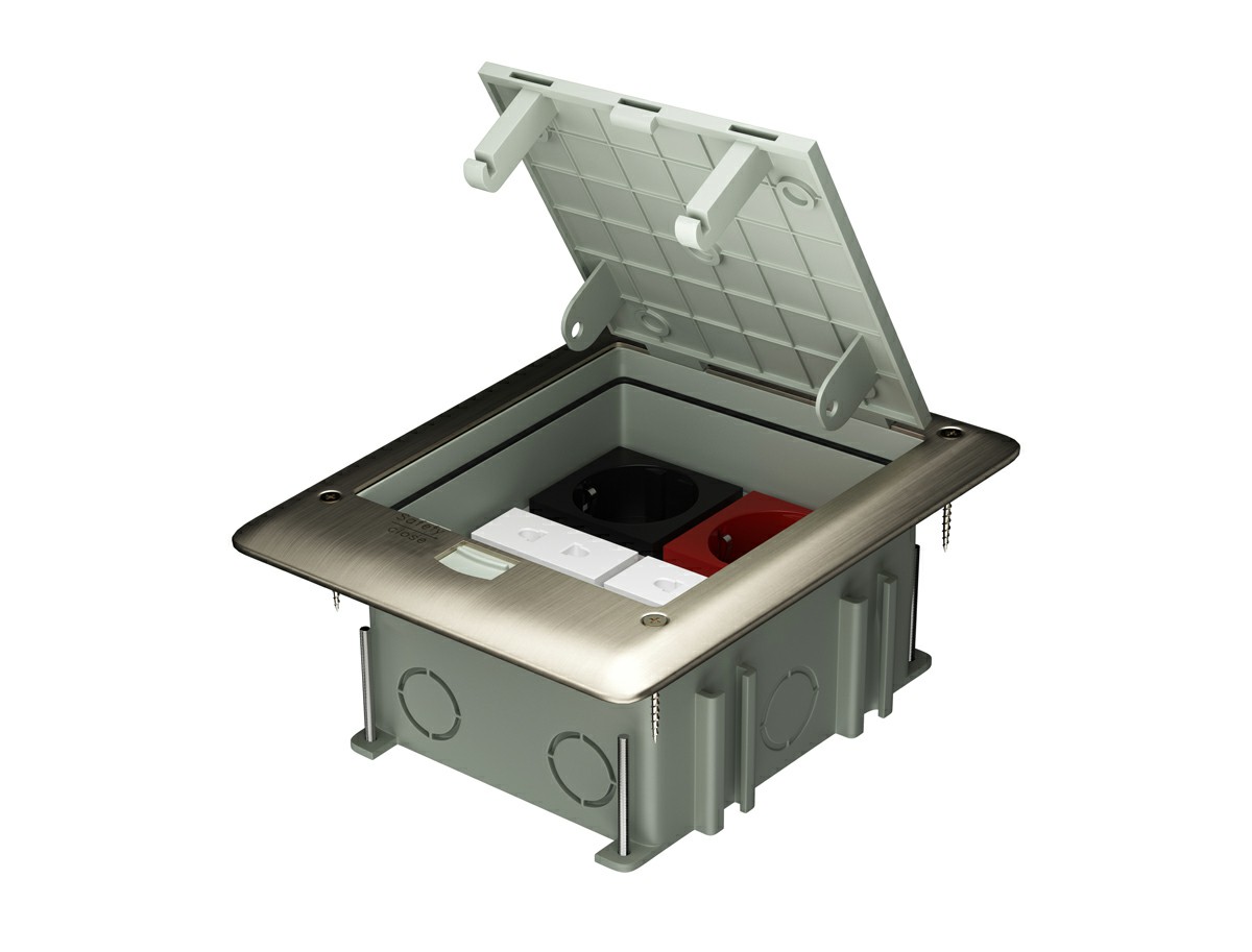 Лючок в пол 6 мод. (2 мод. 45х45 мм. + 2 мод. 22.5х45 мм.), металл, IP66, (с уст. набором)