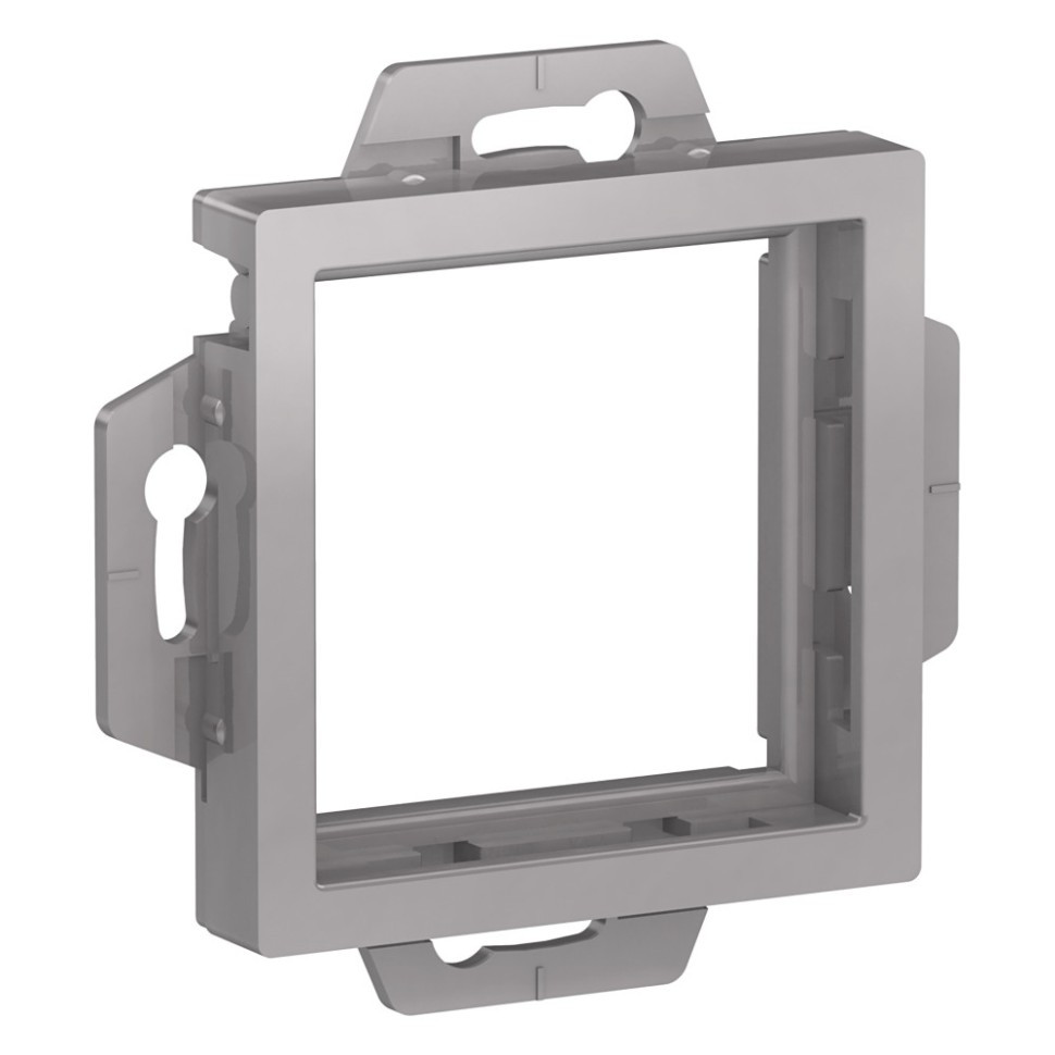 Адаптер коллекции AtlasDesign в исполнении алюминий. - Позволяет совмещать рамки AtlasDesign с механизмами других серий, размер которых 45х45 мм. - Лицевые панели из качественного ABS-пластика, устойчивого к царапинам и УФ-излучению.