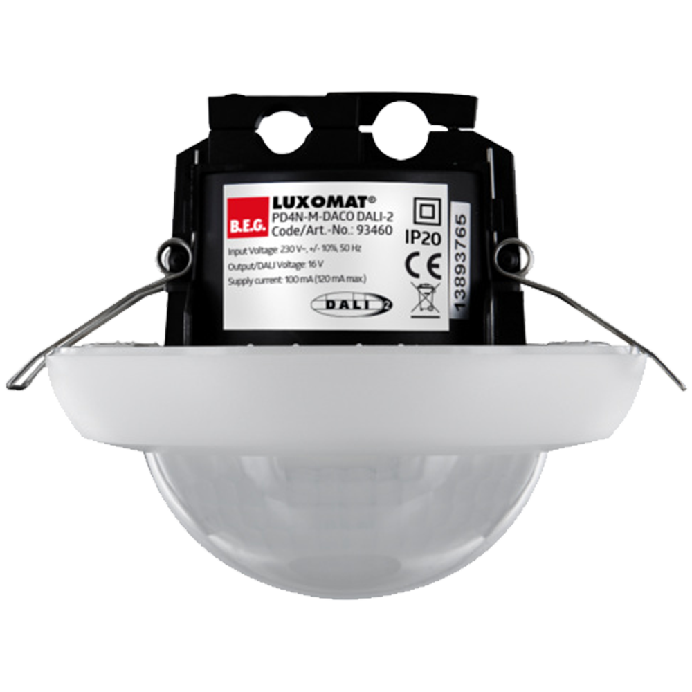 Датчик присутствия со встроенным прикладным контроллером DALI для энергоэффективного управления освещением Сертифицированный продукт DALI-2 Встроенный источник питания DALI Интерфейс DALI для управления цифровыми ЭКГ с регулируемой яркостью в режиме трансляции Ручное переключение или затемнение с помощью обычных кнопок Двунаправленная ИК-связь обеспечивает быструю интеграцию в функцию управления проектами приложения B.E.G. One Полный набор функций может быть активирован только с помощью BLE-IR-адаптера и совместимого смартфона или планшета (Android, iOS). Регулируемый полуавтоматический, полноавтоматический, не зависящий от присутствия или освещенности режим Регулируемая динамика регулирования (минимальные и максимальные значения) Регулируемая скорость и задержка регулирования Единственная основная версия, не подключаемая к сети Зона обнаружения может быть расширена с помощью подчиненных устройств Смешанное измерение освещенности с помощью внутреннего и внешнего датчика освещенности Выходная мощность DALI может быть увеличена с помощью аксессуаров Встроенная схема сбора дневного света (или выход переключателя) Регулируемое значение включения Последнее значение - функция напоминания о значении включения Настраиваемое значение яркости и коэффициент отражения Индикация текущего значения датчика освещенности в приложении B.E.G. One Самопроверка и отображение ошибок устройства в приложении B.E.G. One Индикаторы состояния могут быть активированы / деактивированы PIN-код Функция коридора - Отключает возможность выключения света с помощью кнопки Количество участников DALI можно быстро и надежно определить с помощью онлайн-планировщика линий DALI B.E.G. Программное обеспечение обратно совместимо с первым поколением (за исключением DSI, двойной блокировки и функции коридора). Заводская настройка 10 минут времени ожидания и заданное значение яркости 500 люкс Включая предварительно собранный пружинный зажим с ограничителем натяжения и защитным колпачком для встраиваемого потолочного монтажа Доступно вспомогательное оборудование для поверхностного монтажа Опционально доступны аксессуары для настенного монтажа Дополнительные аксессуары для подбора цвета опционально доступны -