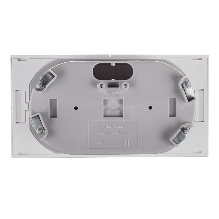 Розетка двойная коллекции AtlasDesign (в сборе, цвет белый) с заземлением и шторками, со сдвижными крышками Подходит для использования в сетях напряжением 250 В с током до 16 А. - Пластик с ионами серебра в белом исполнении обеспечивает антибактериальный эффект. - Заземляющий контакт обеспечивает дополнительную защиту от удара электрическим током. - Специальная монтажная коробка входит в комплект. - Это самая плоская розетка в своем сегменте – она практически сливается со стеной.