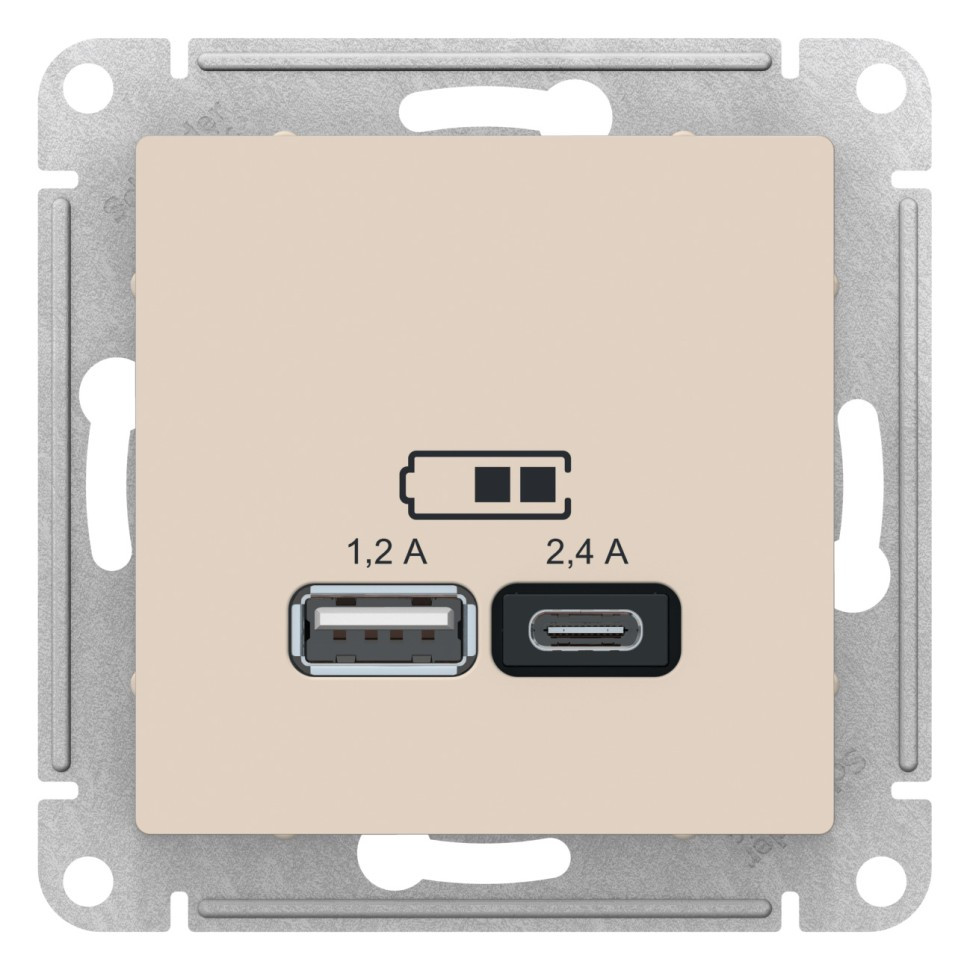ATN000239 - AtlasDesign USB розетка A+С, 5В/2,4А, 2х5В/1,2А, бежевый