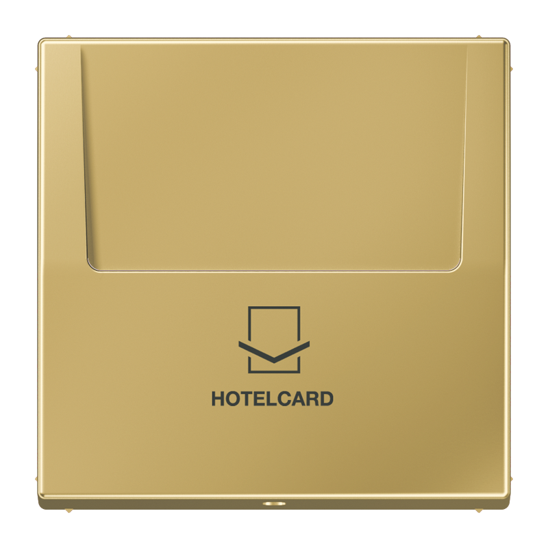 When inserting the key card (being supplied by the door lock manufacturer) a contact will be given to the distribution board (relay). Depending on the installation/wiring all connected lights and other electric consumers will be supplied with energy. Individual control of the lights and ac/heater by JUNG rocker switches or dimmers. The key card has to be removed when leaving the room; the energy supply will be cut automatically. Illumination (orienting light) possible.